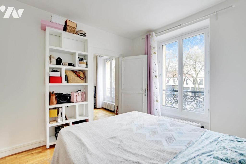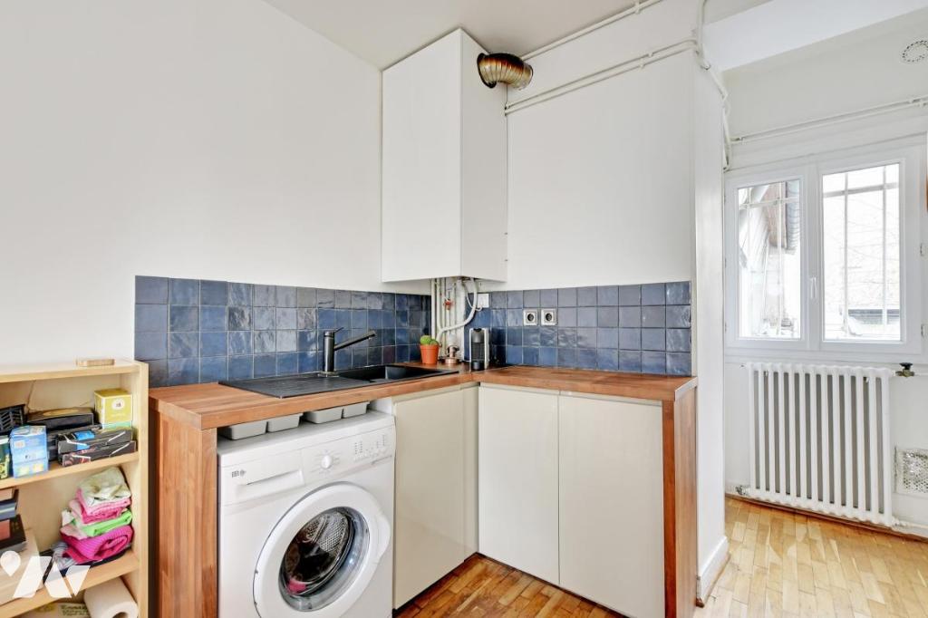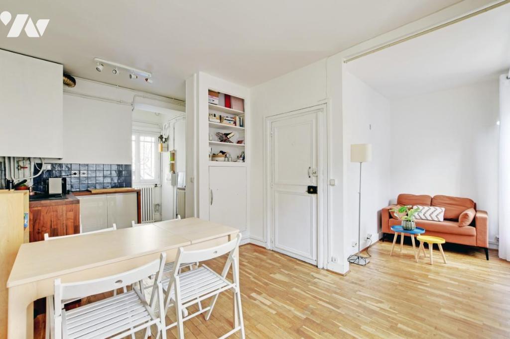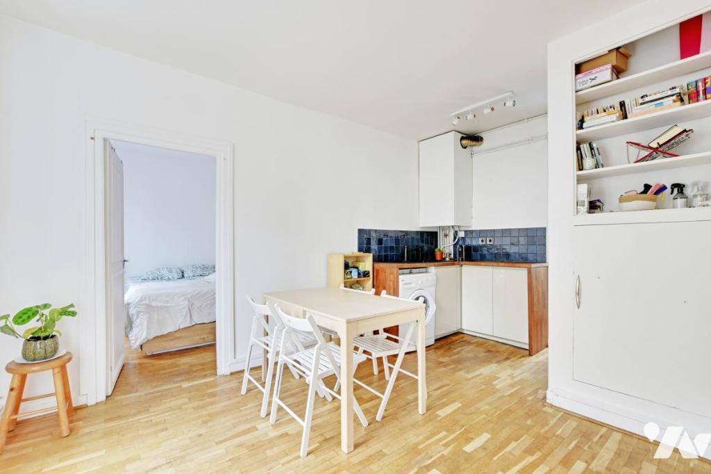 Appartement de 2 pièces au 1er étage par escalier lumineux sans vis-à-vis, traversant exposé Est/Ouest au sein d’un immeuble ancien, à proximité du Père Lachaise, côté 11ème.