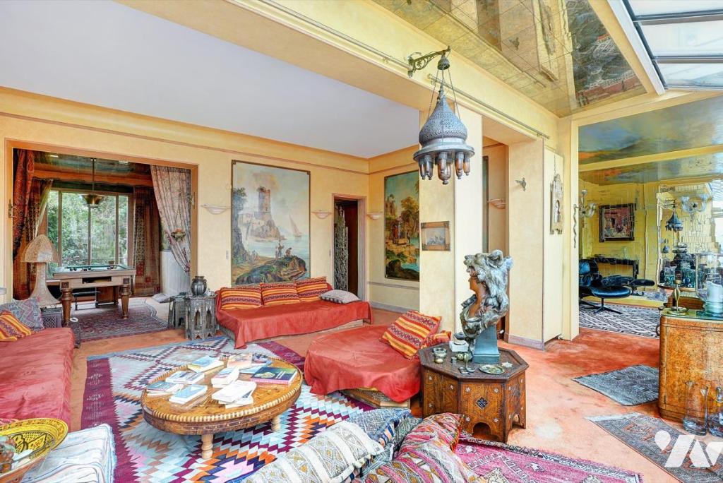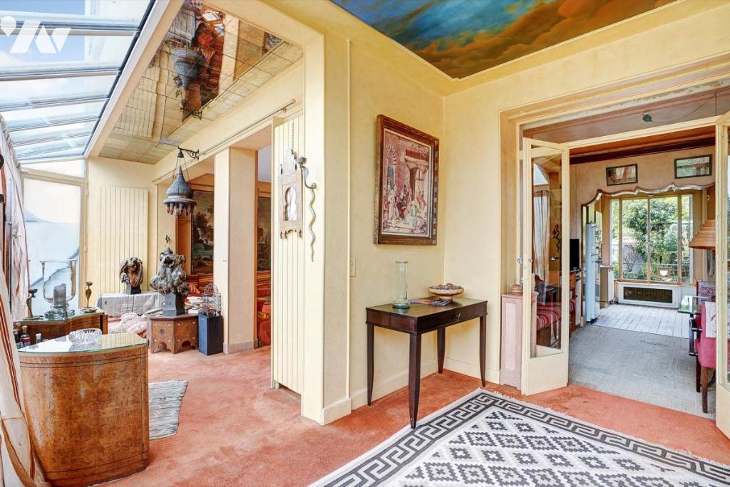 11 pièces, très lumineux, 2 entrées possibles, éléments de décoration remarquables (ferronneries, boiseries, fresques murales, marbre), pas de vis-à-vis, très calme.