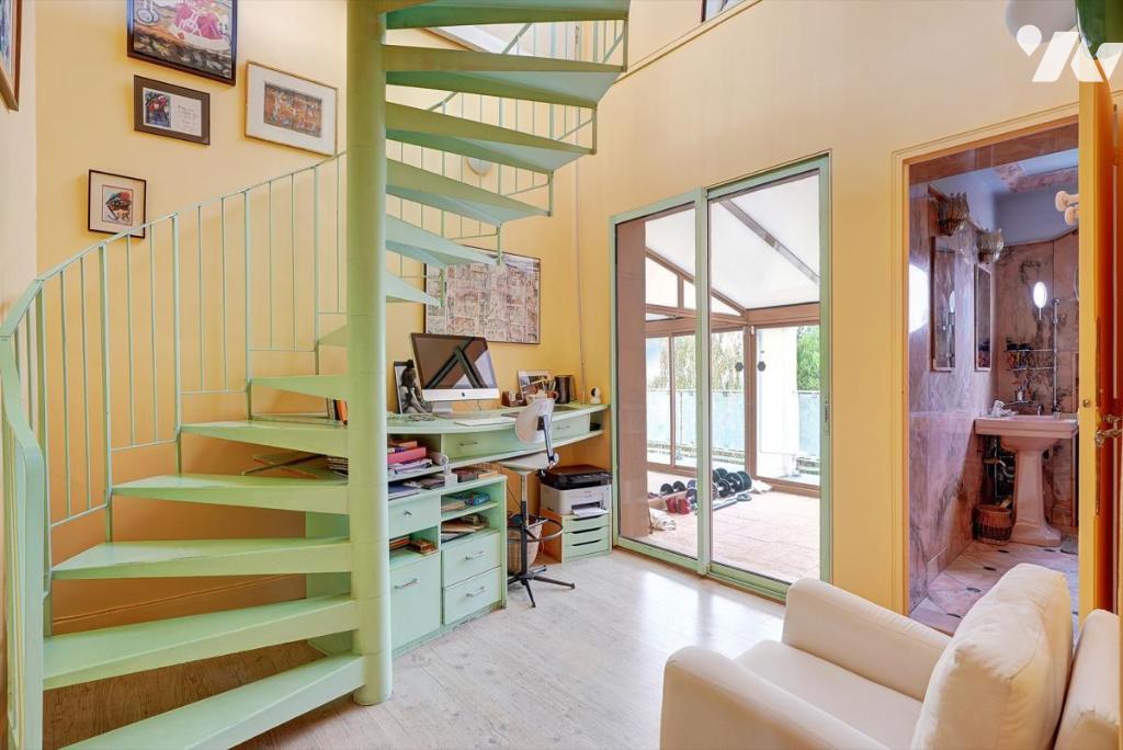 Actuellement le bien se compose d’un niveau inférieur avec une entrée, une pièce de vie avec cuisine sous véranda, d’une chambre, d’une deuxième pièce, d’un dressing, d’une salle de douche, de WC séparé, d’une cave/buanderie ; d’un niveau principal avec entrée, salon avec verrière sur jardin, salle à manger (53m² de pièce de vie) et cuisine ; à l’étage, 3 chambres, un bureau, une salle de bain, une salle de douche et un WC; enfin au niveau supérieur, une chambre et une terrasse panoramique.